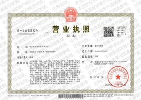 哈爾濱辰邦經(jīng)貿(mào)有限公司 營業(yè)執(zhí)照